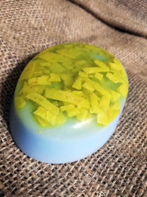 Βάση σαπουνιού φυτικής γλυκερίνης, αμυγδαλέλαιο, αιθέριο έλαιο χαμομήλι, λεβάντα, χαμομηλέλαιο, άρωμα ζαχαροπλαστικής. Τρίμματα σαπουνιού ψυχρής μεθόδου με αμυγδαλέλαιο, ελαιόλαδο, λάδι καρύδας, χρώμα ζαχαροπλαστικής