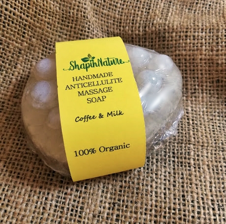 Χειροποίητο σαπούνι μασάζ για την κυτταρίτιδα με εκχύλισμα από φύκια, τριμμένους κόκκους καφέ, αλάτι Μεσσολογίου και φυσική λούφα. Αφαιρεί τα νεκρά κύτταρα από την επιφάνεια του δέρματος κάνοντας απολέπιση. Προλαμβάνει την όψη φλοιού πορτοκαλιού και τονώνει το δέρμα χαρίζοντας λάμψη και απαλότητα. Τα φύκια και ο αλεσμένος καφές παρέχουν ισχυρή δράση κατά του τοπικού πάχους και γι αυτό αποτελούν αξιοσημείωτα συστατικά στη φροντίδα του δέρματος. Συμβάλλουν στην τόνωση, την ενυδάτωση και την επαναφορά της σφριγηλότητας. Διαστέλλουν τα αιμοφόρα αγγεία, αυξάνουν την κυκλοφορία και μειώνουν την κατακράτηση νερού. Το θαλασσινό αλάτι Μεσολογγίου, περιέχει μεγάλη ποσότητα βιταμίνης C , ευεργετικών ιχνοστοιχείων και μαγνησίου, που καταπολεμούν τις ελεύθερες ρίζες και αποτοξινώνουν τα κύτταρα του δέρματος. Η δράση του σαπουνιού ενισχύεται με λούφα και σπόρους παπαρούνας που με τη σειρά τους δρουν απολεπιστικά στο σώμα. Με υπέροχο τονωτικό άρωμα.